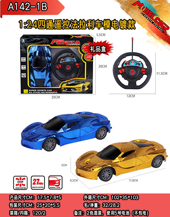 18A142-1B10.31:24四通遥控法拉利车模电镀款120/2礼品盒28.22色混装,使用AA电池(不包电)